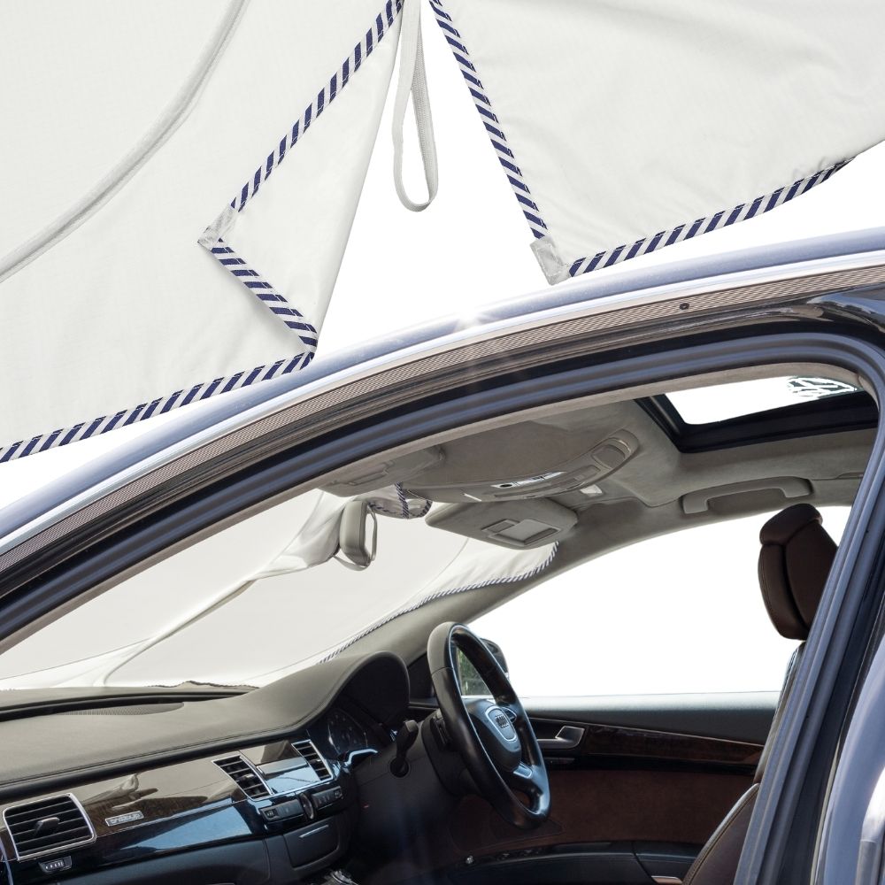 The Ultimate Windscreen Sun Shield significantly reduces your car's interior temperature. In our tests, a shield-equipped vehicle was up to 27.2°C cooler than an unprotected one. This feature not only enhances comfort but also safeguards against the risks of overheating, particularly for children and pets.